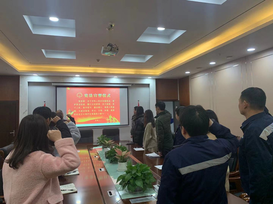公司組織開展一系列憲法宣傳活動(dòng),掀起了一陣學(xué)習(xí)憲法的熱潮。一是組織全體干部職工關(guān)注“黃石司法”微信公眾號(hào),積極動(dòng)員大家開展憲法法律知識(shí)網(wǎng)絡(luò)有獎(jiǎng)競答活動(dòng),公司共60余名干部職工參與測(cè)試,測(cè)試效果顯著,平均分達(dá)80分。二是組織青年干部職工觀看《身邊的憲法》公益宣傳片,深刻把握憲法核心要義,引導(dǎo)干部職工不斷深化對(duì)憲法的政治認(rèn)同和情感認(rèn)同。三是組織干部職工進(jìn)行憲法宣誓,錚錚誓言詮釋對(duì)敬畏憲法、遵守憲法、維護(hù)憲法的使命感和責(zé)任感。四是通過公司微信公眾號(hào)平臺(tái)發(fā)布憲法文本,深入學(xué)習(xí)貫徹習(xí)近平法治思想,大力弘揚(yáng)憲法精神,堅(jiān)決維護(hù)憲法權(quán)威,切實(shí)推動(dòng)憲法實(shí)施。