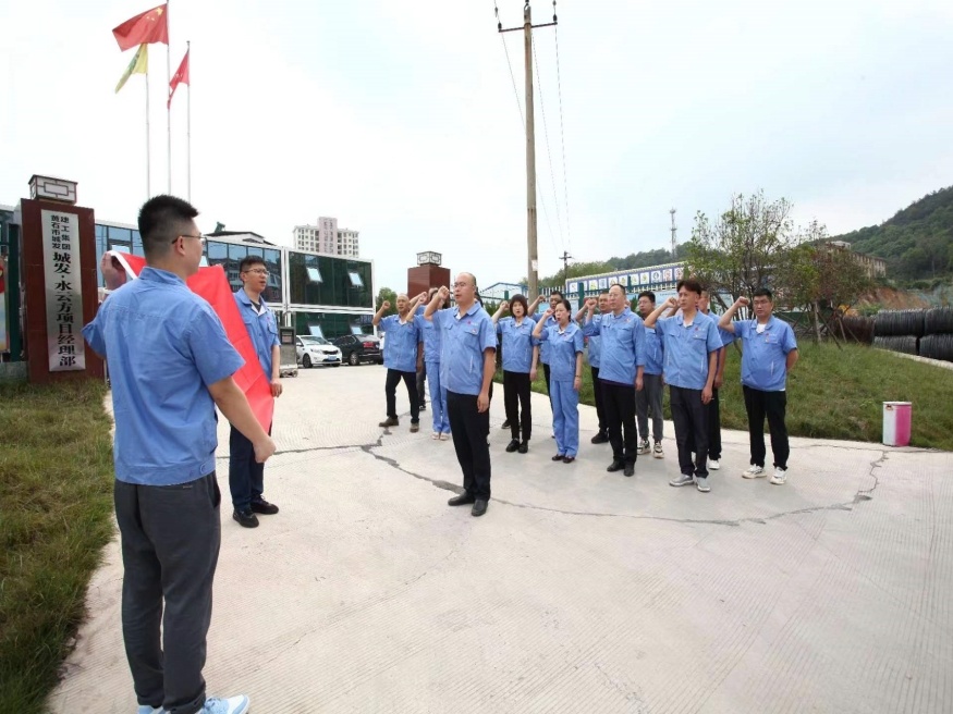 圖為市城發(fā)建設(shè)公司黨支部在城發(fā)·水云方項(xiàng)目部開展以“黨員示范進(jìn)工地 項(xiàng)目建設(shè)立新功”為主題的黨小組+項(xiàng)目部工作機(jī)制活動(dòng)