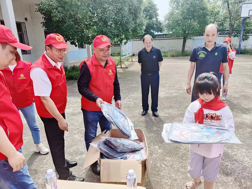 王明林志愿服務(wù)建工集團分隊一行與港溝小學(xué)王校長和教職員工進行座談,深入了解留守兒童學(xué)習(xí)、身體、生活等各方面狀況,并給在讀的16名兒童送上雙肩書包、夏秋季校服及籃球、文具、教學(xué)器材等配套文體用品。